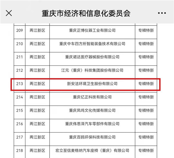克日,,,重庆市经济和信息化委员会宣布《关于宣布2021年重庆市“专精特新”中小企业名单的通知》,,,bb电子游戏官网情形卫生股份有限公司获得2021年重庆市“专精特新”中小企业认定。。。